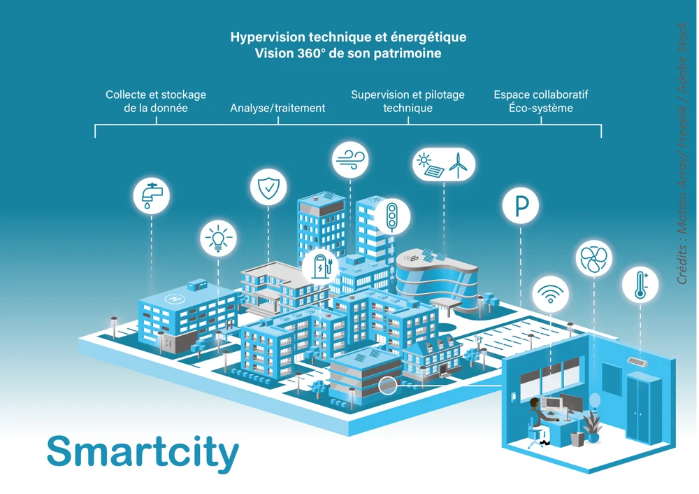Pour les collectivités, l’hypervision est particulièrement avantageuse car elle permet de regrouper un large éventail d’usages, de la gestion des services techniques et environnementaux à la sécurité et à l’aménagement du territoire. Elle peut également traiter des informations à une échelle plus large, telles que la gestion des infrastructures de recharge des véhicules électriques, des parkings publics, du photovoltaïque en auto-consommation collective, etc., contribuant ainsi au développement de la Smart City. En résumé, l’hypervision offre une meilleure gestion des parcs immobiliers, une optimisation des coûts énergétiques et permet la communication avec d’autres outils métiers.
