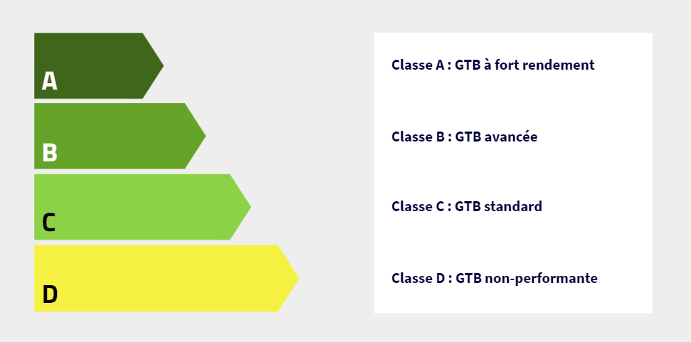 Les quatre classes de systèmes de GTB selon leur performance énergétique sont :